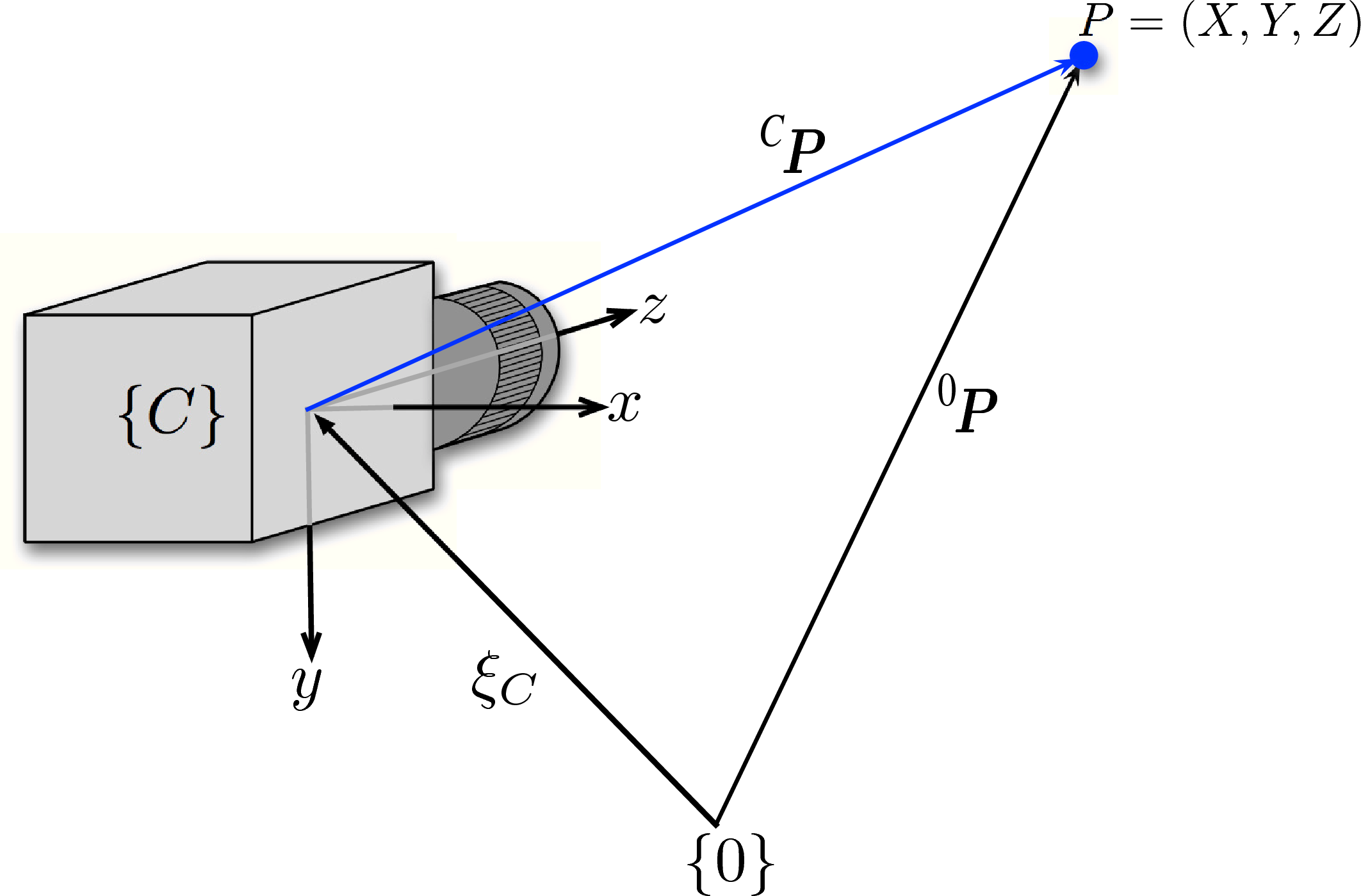 Fig. 7.10 Figure 11.5 from [RVC]. The camera may be translated and rotated relative to a world coordinate frame.¶