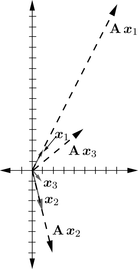 \(\mathbf{A}\,\bm{x}_3\) shows the typical matrix-to-vector