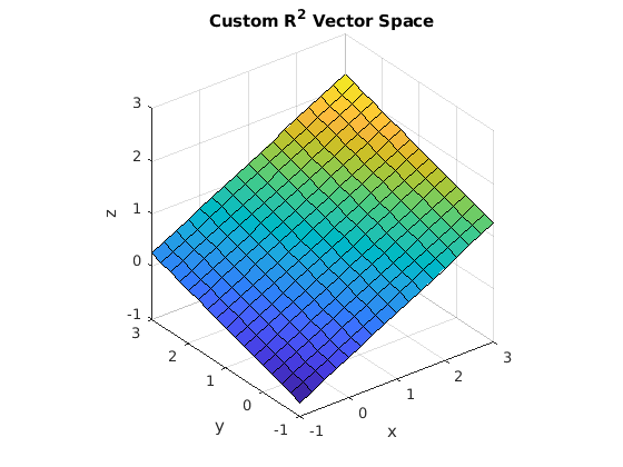 In figure Fig. 2.10, a \(\mathbb{R}^2\) custom vector space has basis vectors as the columns of the \(\bf{W}\) matrix. Even though the basis vectors are in \(\mathbb{R}^3\) Cartesian coordinates, the vector space is 2-dimensional since there are two basis vectors, and the span of the vector space is a plane.